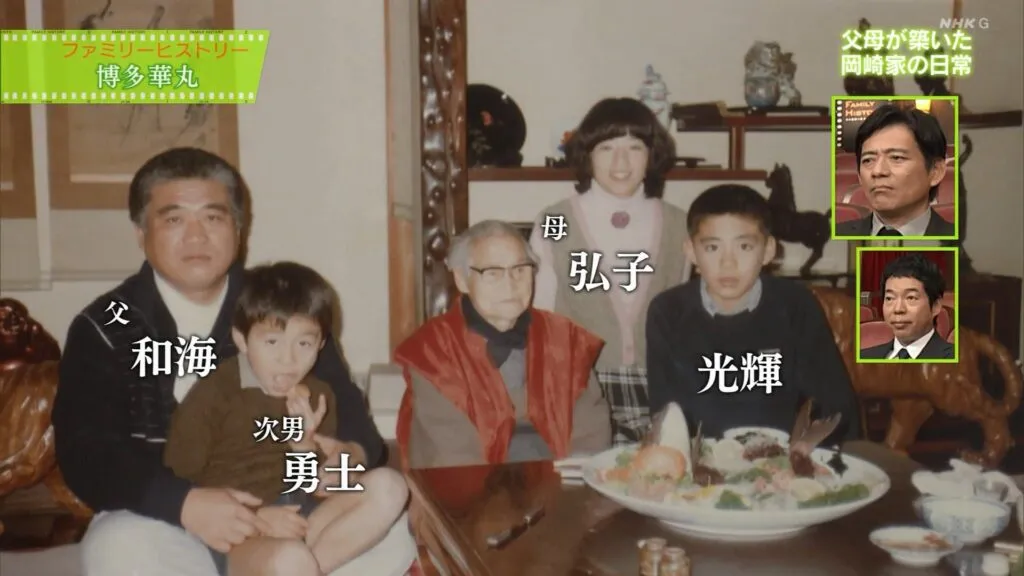 2023年12月に放送されたNHKの「ファミリーヒストリー」では、昭和45年(1970年)に博多華丸さんが誕生した時期の岡崎家の様子が紹介されました。